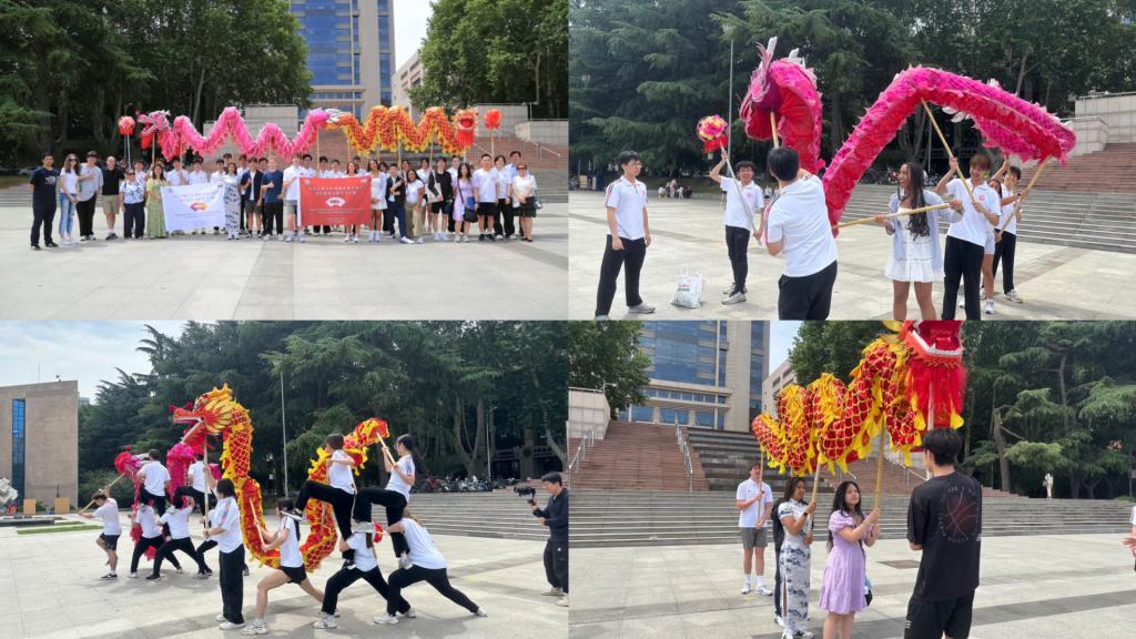 鼓点起,龙首昂。来自舞龙舞狮协会及国际分会、由西安交大本科生与国际教育学院留学生联合组成的舞龙队在四大发明广场为远道而来的美国学生献上了一场“龙游云海、盘龙昂首” 的文化盛宴。