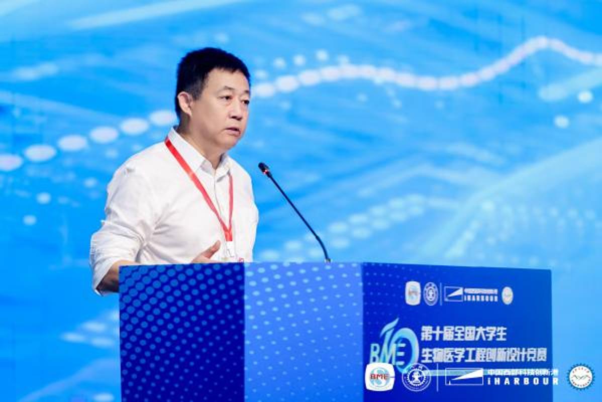 企业代表,深圳智界探索创始人黄海涛先生和上海联影医疗联席CEO兼总经理谭国陞先生先后致辞。他们结合行业前沿发展趋势,强调了产学研深度融合对推动生物医学工程发展的重要性,并表达了对青年创新人才的殷切期盼与坚定支持。