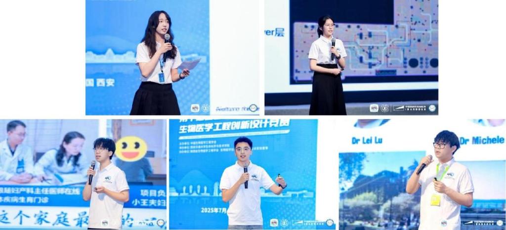 颁奖后,五名参赛学生分别登台分享了他们的“医工梦”。他们从项目背景出发,详细阐述了各自在生物医学工程领域的创新思路与实践成果,展现了青年学子的国际视野与担当精神。