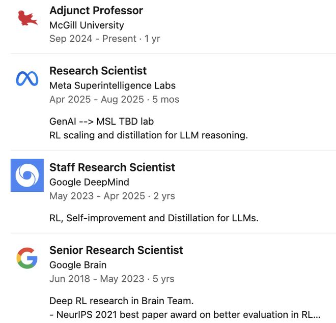 另一位MSL研究员Rishabh Agarwal也被小扎的毒鸡汤「劝退了」,官宣离职: