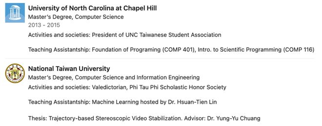 Tony Liu曾获得大学计算机科学与信息工程硕士学位,以及北卡罗来纳大学教堂山分校计算机科学硕士学位。